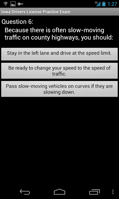 Test your knowledge of the rules of the road for the State of Iowa. This app has been created by the Iowa Department of Transportation to help you become a safe driver. This app is designed to help develop the necessary foundation to safely meet your responsibilities as a new driver. Offers English and Spanish options.