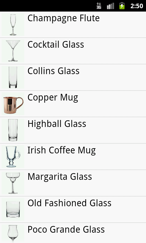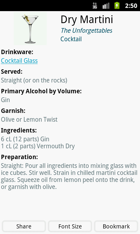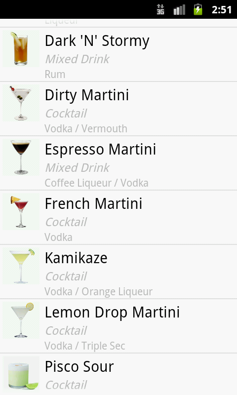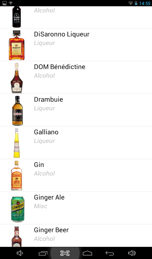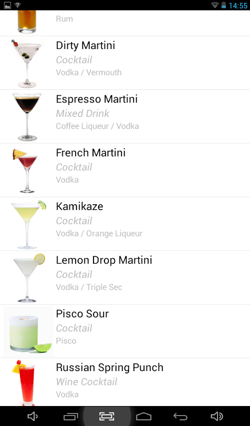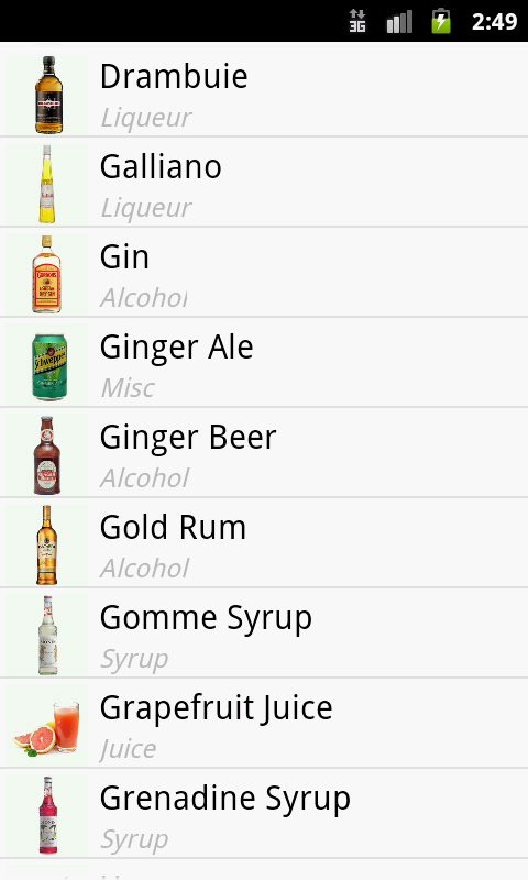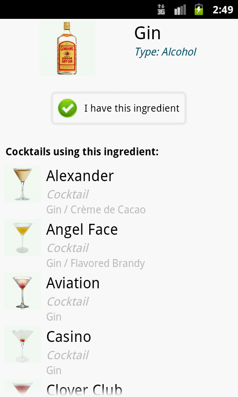 There is also a list of ingredients used in cocktails: You may search for a recipe based on the ingredient.