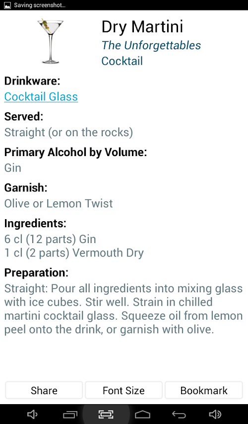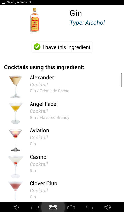 Also, for example: If you have Gin and Vermouth Dry, the system will add a mark on "Dry Martini" so you can list the cocktails you're able to do with the ingredients you already have.