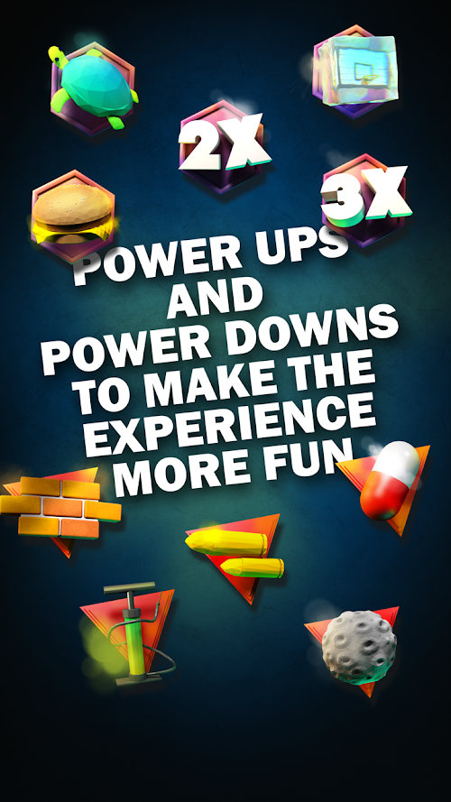 - Level up: just you against the computer. Help yourself by using power ups and avoid power downs to get the highest score possible.