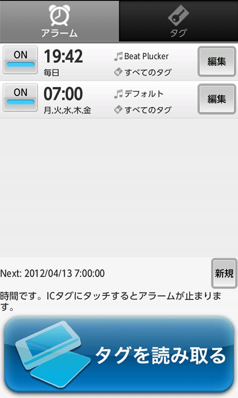 This app initially allows only adding FeliCa Lite tags. You can unlock all features (editing and using alarms) by purchasing the in-app item "IC Tag Alarm Full Version".