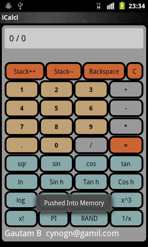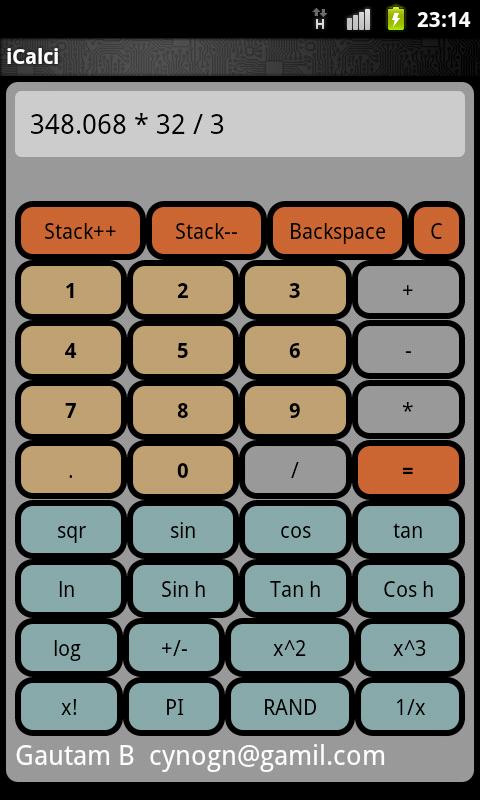 iCalci Calculator - A colorful user friendly calculator. What's user friendly in this calculator?? Well the vibrant colors of the numbers and the trigonometric functions and the size of the buttons makes the calculator easy to operate. Do try out and leave us your comments to help us rectify the problems.
