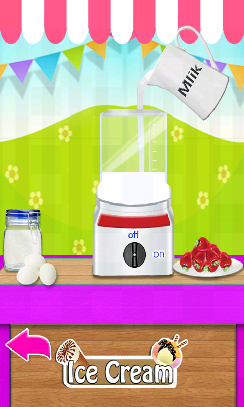 Now is the first day of summer and everyone went to the park because it is very hot. While we were walking through the park I noticed a car with ice cream, which until now was not in this place. We thought let's go buy an ice cream as it is very hot outside and we need to cool down. In this game you will prepare ice cream and decorate as you would your clients say, and should be as tasty and as decorated. First you have to choose what kind of ice cream you will, pineapple, grapes, bananas, strawberries, kiwi, watermelon, cantaloupe, pears, apples, cherries, oranges, apricots, nectarines and grapes. After choosing this, we need to prepare the ice cream, put the milk, eggs and a pinch of sugar in a mixer to mix, then add the fruit we chose. Then we have to put the composition in the refrigerator to cool, then we could put in a cone and customer service. After I put it in cones, we can add different pieces of glazured chocolate or topping. Thank you for helping us do this and that you have chosen this wonderful game, and we invite you to choose and other games for girls that will test your skills and will provide skills and creativity to play. Thank you.