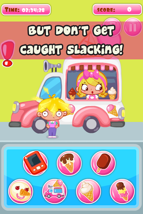 I scream, you scream, we all scream for ice cream! Lucky Sarah has left the office behind and started a new job working in an ice cream truck delivering delicious ice cream in this fun Slacking girls game, Ice Cream Slacking! Complete seven fun mini-games within the time limit and keep the cool ice cream to yourself, but don't get caught Slacking by the customers!