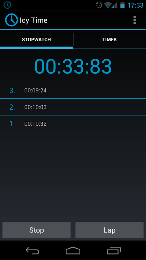 Icy Time is a minimalistic and easy to use stopwatch and timer app.