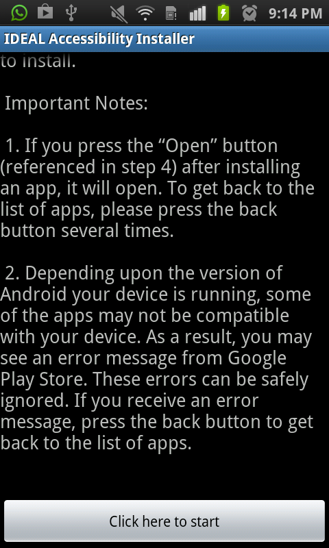 2. Depending upon the version of Android your device is running, some of the apps may not be compatible with your device. As a result, you may see an error message from Google Play Store. These errors can be safely ignored. If you receive an error message, press the back button to get back to the list of apps.