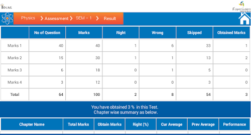Chapter wise & Topic wise report allows users to define the difficult Chapters/Topics in a particular subject that helps in making revision plans.