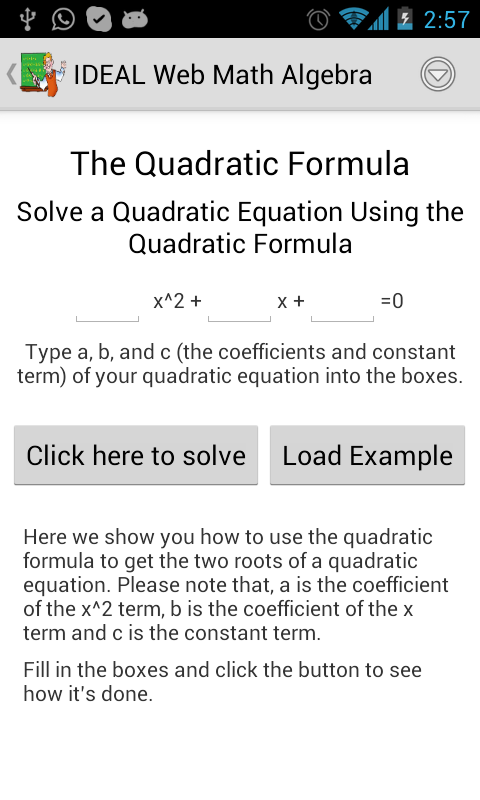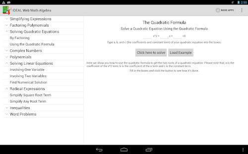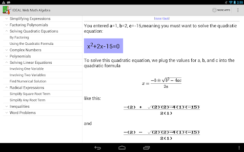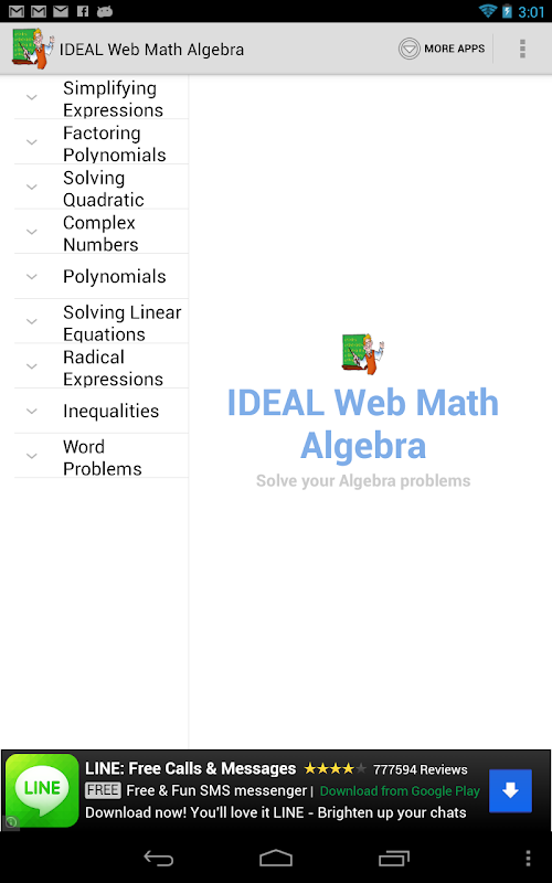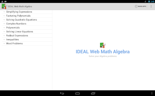 This version of IDEAL Web Math Algebra Android App comes with one universal variant which will work on all the Android devices.
