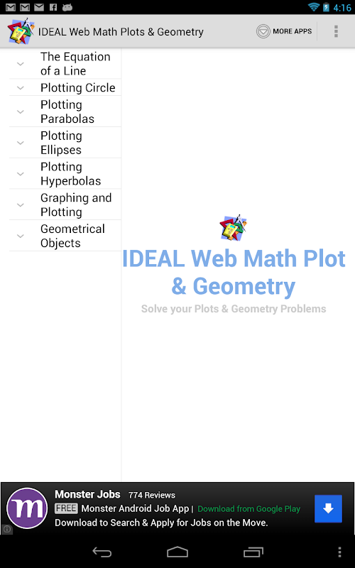 This version of IDEAL Web Math Plots/Geometry Android App comes with one universal variant which will work on all the Android devices.