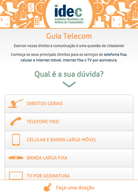 Esses serviços estão entre os que mais geram dúvidas e reclamações. Veja aqui os seus principais direitos. Há alguns direitos gerais, comuns a todos os serviços, e direitos específicos para os serviços de telefonia fixa, celular e internet móvel, internet fixa e TV por assinatura.Exercise our right to communication is a matter of citizenship.