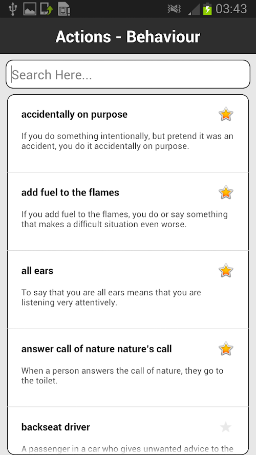 5. Search categories, idioms for quick access