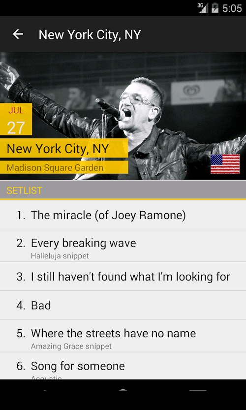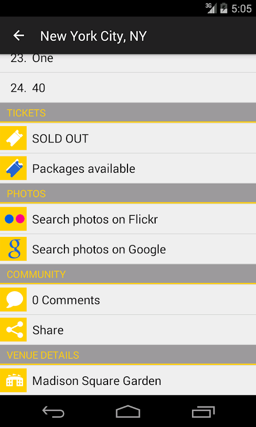 - Search within the App for photos of concerts on Flickr and on Google Images!