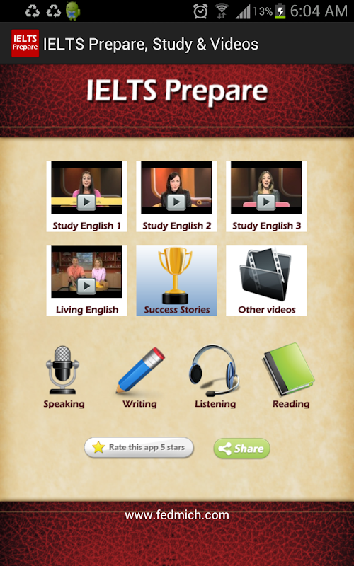 This app contains a compilation of videos to help you prepare and study for your IELTS examination. This can help you on your IELTS Speaking, IELTS Writing, IELTS Reading as well as IELTS Listening.