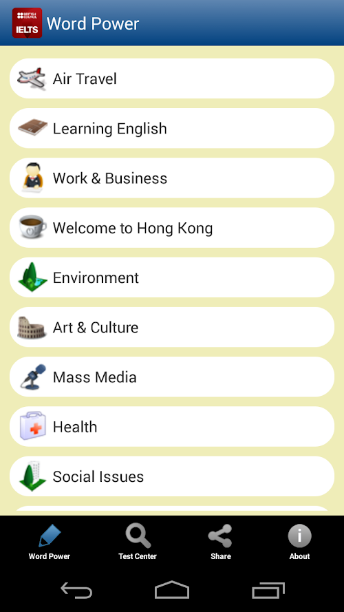 IELTS Word Power is an app designed for English language users who want to expand their vocabulary. It will help you sharpen your reading and listening skills, and build the kind of vocabulary knowledge you need to get a better IELTS score.