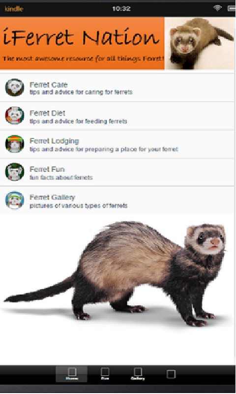 This app is designed to help owners discover the wonders of ferrets and learn the best methods of caring for them. It includes the following information: