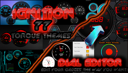Ignition 77 Gauges and Dials for Torque Lite and Pro with Backgrounds to match. Brand new editor! You can Now Change the Font on your Dial, with 6 other new features only in 77 pack. Millions of Color Combinations. For Torque Pro or Torque Lite.