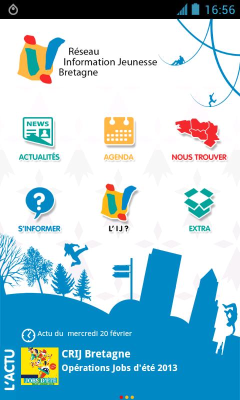 L’application Ij Bretagne est proposée par le Réseau Information Jeunesse Bretagne qui informe tous les jeunes sur tous les sujets de manière gratuite, anonyme et sans rendez-vous. Vous retrouverez dans cette application toute l’actualité du CRIJ Bretagne ainsi que des Points et Bureaux Information Jeunesse dans une partie reprenant l’ensemble des publications numériques de ces structures. Une partie « Agenda » vous permettra de visualiser tous les temps forts et événements dans notre réseau. Grâce au menu « Nous trouver », vous pourrez identifier la structure la plus proche de chez vous. Le menu « S’informer », présenté sous forme de foire aux questions, apporte une première réponse sur divers sujets. Le menu « Extra », enfin, propose à la fois un scanner de QR Code qui permet d’emporter sur son téléphone la documentation conçue par le CRIJ et le réseau ainsi qu’une galerie vidéo.The application Ij Britain proposed by the Youth Information Network UK which informs all young people on all subjects so free, anonymous and without appointment. You will find in this application all the news CRIJ Britain and the Youth Information Points and offices in a part containing all the digital publications of these structures. Part "Agenda" will allow you to view all the highlights and events in our network. With the menu "We find," you can identify the structure closest to you. Menu "Learn", in the form of frequently asked questions, provides an initial response on various topics. The "Extra" menu, finally, offers both a QR Code scanner that can carry on his phone documentation designed by CRIJ and the network as well as a video gallery.
