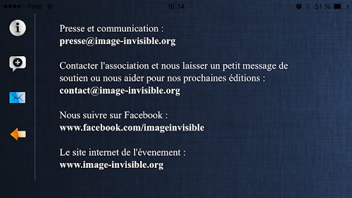 Connectez-vous au site internet : www.image-invisible.org pour savoir, où se situent les expositions.