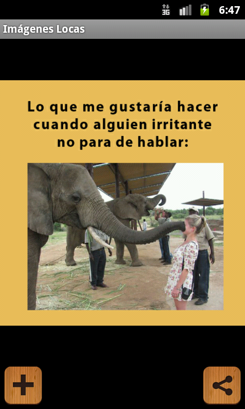 Imagenes locas es una aplicación con la que poder reirte cada día, dispone de un widget donde sale cada día una imagen loca de forma aleatoria, y como no puede ser de otra forma si entras en la app encontrarás muchas más.