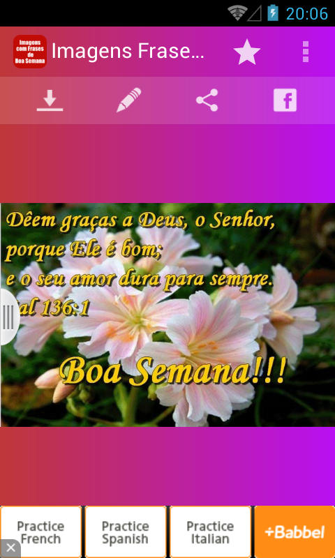 ► Com esta aplicação, você pode compartilhar frases com a mensagem de que você gosta, como poderia ser: "mensagens de boa semana" o "boa semana a todos".