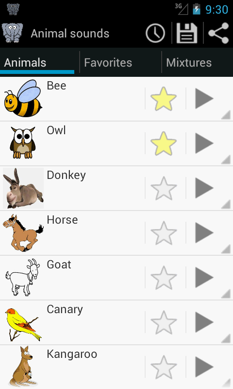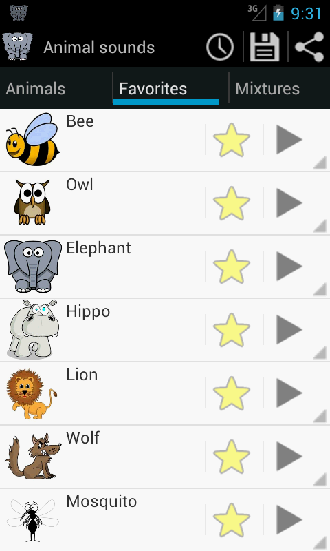 You will find more than 40 animals tones and melodies , such as animals from the zoo , farm animals, jungle animals or wild animals sounds and there are also funny sounds from cats and dogs.