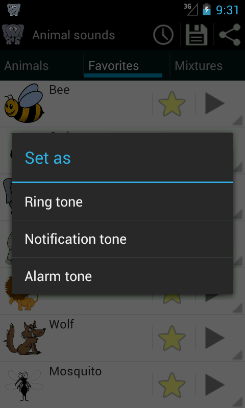 Animal Sounds and Ringtones free, you will be able to customize sounds for your ringtone or for the alarm.