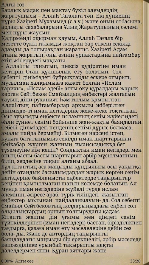 Bұl kіtaptyң ace maңyzdy құndylyғy wasps uaқytқa deyіn Otandyk basylymdardan zharyқ kөrgen Senim negіzderіne baylanysty eңbekterde taқyryptar keңіnen қamtylmaғan shaғyn kөlemde bolatyn. Iman al mұnda negіzderіne zhүyelі tүrde Islam әlemіnің, әsіrese Arab tүrіk tіlіndegі zhazylғan eңbekter molynan paydalanyluyn- yes. Sol sebeptі Smayyl Seytbekovtyң қoldaryңyzdaғy enbegi hydrochloric olқylyқtardyң ornyn toltyrudaғy қadam.