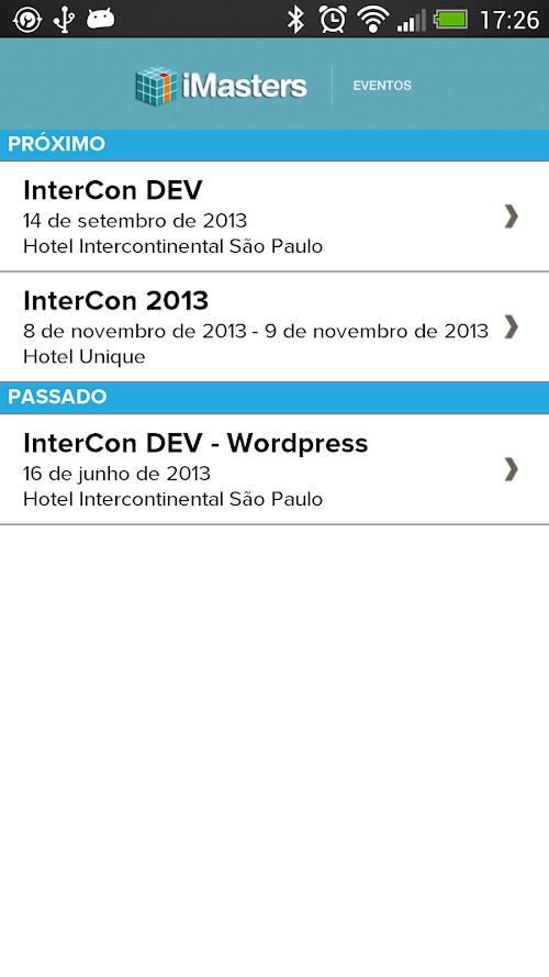 Aplicativo que reúne informações completas e recursos para acompanhar todas as edições dos congressos iMasters InterCon.Application that combines comprehensive information and resources to monitor all editions of congress iMasters InterCon.