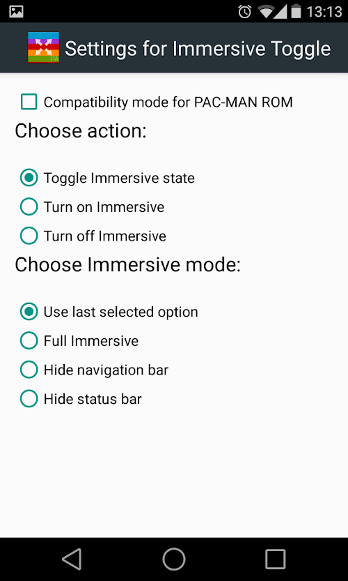 This version of Immersive Toggle Android App comes with one universal variant which will work on all the Android devices.