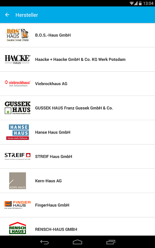- Verschiedene Suchkategorien: Häuser, Hersteller oder Kataloge