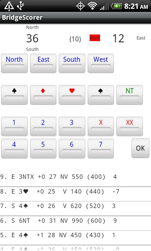 This application can be used to score bridge games using Russian IMP scoring. This method uses the high card points (aka HCP: Ace = 4, King = 3, Queen = 2, Jack = 1) of the partnership to determine a score that the partnership should achieve (using normal bridge scoring).