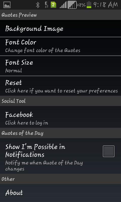 " I'm Possible " great app offers quotes on success, opportunities, dreams, career, inspiration, motivation, confidence and more wisdom that you can use to change your outlook on life and help other people in your life .