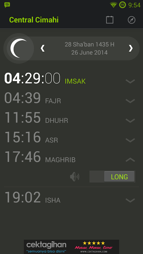 - Penampilan informasi imsak dan maghrib yang bisa berubah secara otomatis