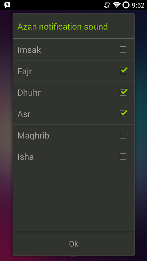 - Otomatis memberikan informasi waktu sholat selanjutnya