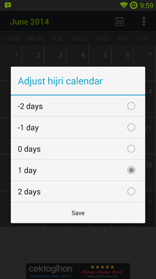 - Penyesuaian manual untuk 1 ramadhan (awal puasa)