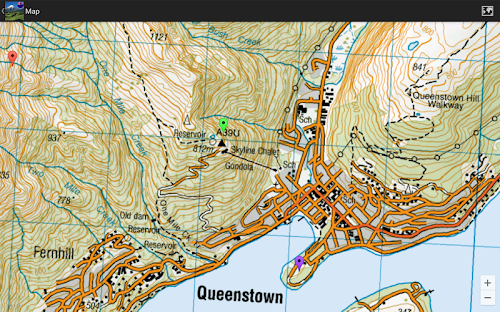 Select between the following map types: Standard, Satellite, Hybrid, and High Resolution. High resolution maps are provided by New Zealand Topographic Maps (www.nztopomaps.com).