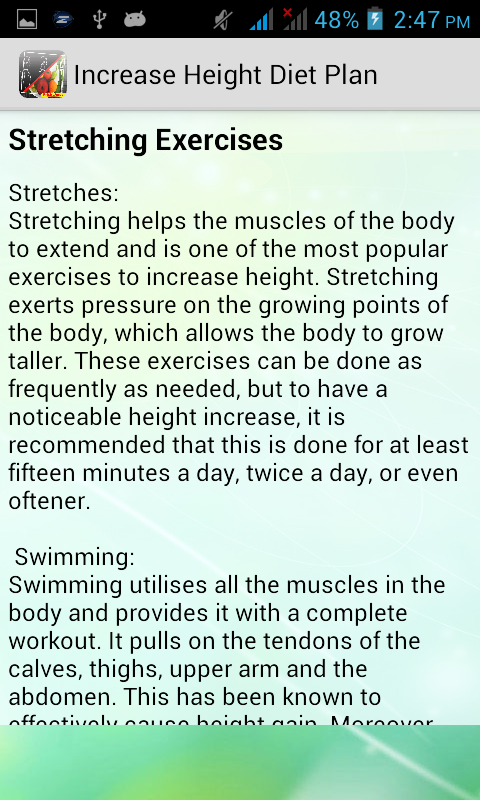 Height depends on genes and on the right kind of food and proper exercise to some extent. Men continue to grow till the age of twenty five whereas women attain there full height by the age of eighteen or nineteen. If you are looking to lose weight, maintain your weight, increase your height, and grow sooner this is the application you need.