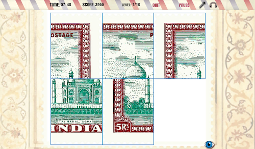 Discover the Secrets of India in this Mahjong and Puzzle game. First play a Mahjong Solitaire game. Combine 2 of the same free tiles to remove them from the board. After that play a sliding puzzle. Slide 1 piece to an empty spot and try to complete the image. Click on the eye icon to reveal the desired end result.