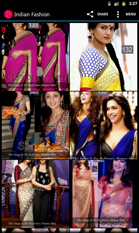 Indian Fashion app contains beautiful collection of Bollywood style, Brocade Silk, Embroider Sarees Designs, Dresses, Wedding collection, Party Wares, Kurtis, Designer Dress.