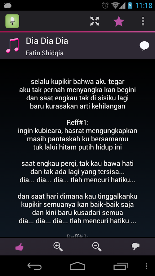In this application you can find great number of Indo-pop lyrics. This application does not contain audio or video. It only contains the lyrics, the title and the name of the artist.