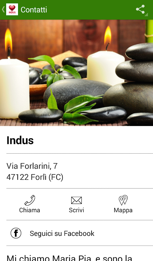 La scelta dei trattamenti viene fatta sempre in accordo con il cliente e solo dopo averne spiegato la reale utilità.My name is Maria Pia, and I am the owner of this Wellness Center. I work in this work since 1986, and in recent years I have attended numerous courses which have proved, then, valuable personal paths, which have greatly enriched me professionally and personally. All that I offer in this center, I previously experimented on myself.