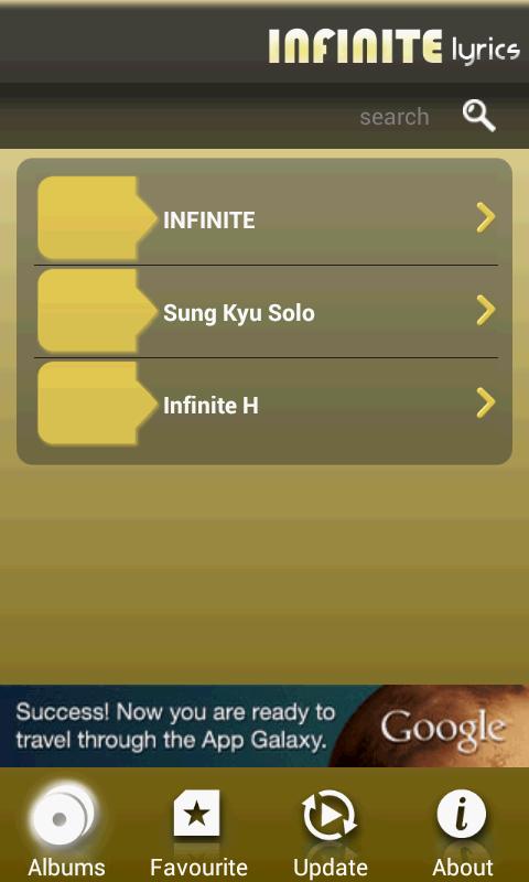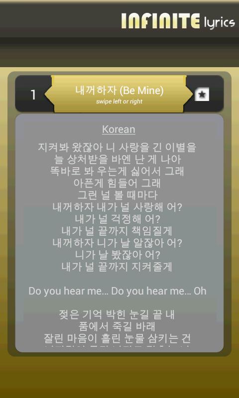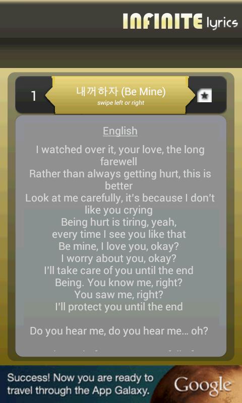 If you are looking to download other versions of Infinite Lyrics Android App, We have 1 version in our database. Please select one of them below to download.