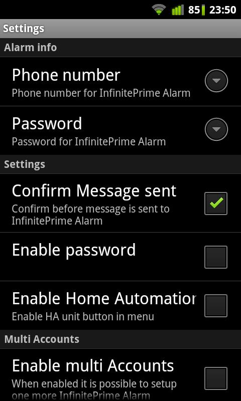 This InfinitePrimeSMS Alarm Remote allows you to access your home alarm system from your mobile phone. By typing in your phone number and password it is possible to activate, deactivate, instant activating, ask for status report, etc.