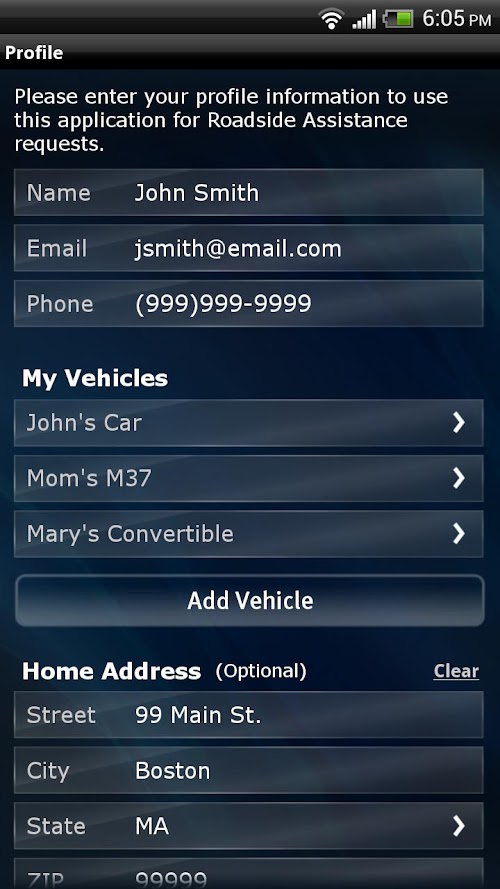 Infiniti’s Roadside Assistance app provides you, the Infiniti owner, with expanded access to summon help in an emergency. Infiniti owners already enjoy roadside assistance 24 hours a day, 7 days a week, and this free Android Phone app makes your Infiniti support experience more seamless than ever. Should you run out of gas, have a flat tire or require a tow to the nearest Infiniti retailer, the Infiniti Roadside Assistance app will put you directly in touch with a roadside assistance agent who can quickly dispatch assistance to your exact location via GPS-enabled technology. The mobile app sends the service provider’s E.T.A. as well as updates throughout the event directly to your Android phone. Plus, the Infiniti Roadside Assistance app lets you input critical data about your Infiniti – including the Vehicle Identification Number (VIN) – for efficient and accurate service. For added safety, the app even includes an emergency response button for urgent situations. Let Infiniti continue to inspire you at every turn– download the free Infiniti Roadside Assistance app today.