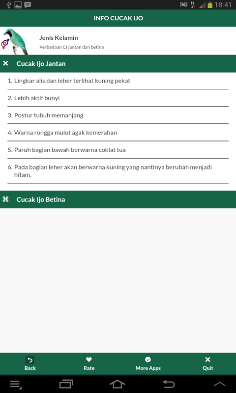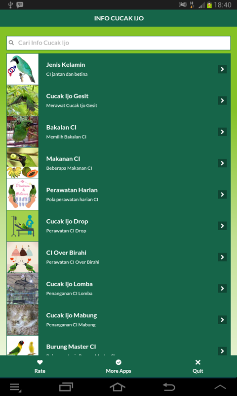 - KOMUNITAS CUCAK IJO (https://www.facebook.com/groups/cucakijogrup/?ref=br_rs)Thanks for the masta-masta that has divided information about the birds cucak ijo. Because these applications are based on notes, postings on the website or in the FB group were summarized into an application.