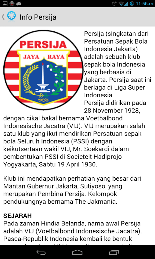 Please note that this is not the official PERSIJA THEJAK or application. We only deliver you the content from jakonline.com, goal.com and many more. All copyright, images and content belong to the respectful owner. We as developers have no affiliation with the content.