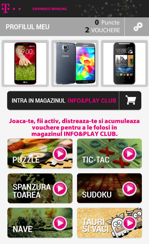 Joaca-te si acumuleaza vouchere pe care sa le folosesti in magazinul INFO&PLAY CLUB!. Aplicatie oferita de Telekom Romania Mobile Communications S.A.