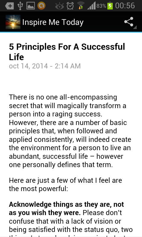 That is why I decided to create this awesome and fantastic inspiration app, that is not about just quote inspiration or quote motivation app, is about learning about been happy with oneself, with how we are and what we want, what we care about from us and the other, about to smile every time we can, to stop and watch around us and appreciate the beautiful and spectacular world that is around us and our loyal family and friends, how to get inspired, get the incentive to keep walking and enjoying it every day and every night, to get the enthusiasm and transmit it to the others, get the encouragement to fight for our dreams and make them true.
