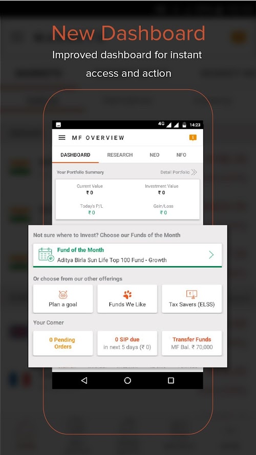 InstaMF is a free mutual funds investment app from Sharekhan - by BNP Paribas. It allows you to manage your funds and make investing in mutual funds much easier. All you need to do to open an InstaMF account is download the InstaMF app, login using your InstaMF account credentials or simply open an InstaMF account right there in 3 simple steps:
