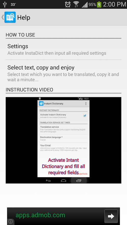 InstaDict is your pocket interpreter. It helps users looking up, translating the text in foreign language which they don't understand right on the reading apps such as browser, e-book reader, email...